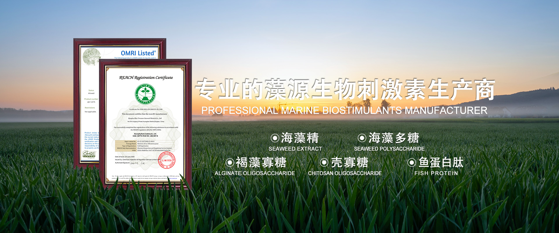 青島藍(lán)寶海洋生物科技有限公司坐落于中國(guó)開(kāi)放城市——青島市西海岸新區(qū),前身為成立于2010年的青島膠南市昊森泰海藻加工廠(chǎng),作為國(guó)家級(jí)高新技術(shù)企業(yè)、科技型中小企業(yè)和青島市“專(zhuān)精特新”企業(yè),我們始終致力于海洋生物資源的開(kāi)發(fā)與應(yīng)用,已通過(guò)美國(guó)OMRI認(rèn)證和歐盟REACH認(rèn)證,產(chǎn)品遠(yuǎn)銷(xiāo)全球50多個(gè)國(guó)家和地區(qū)。